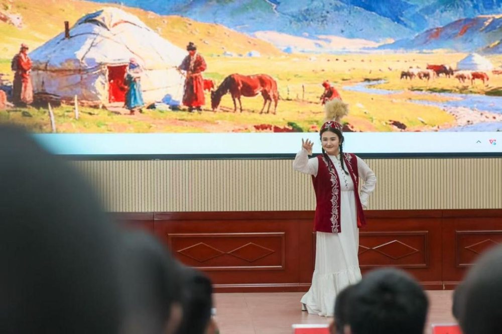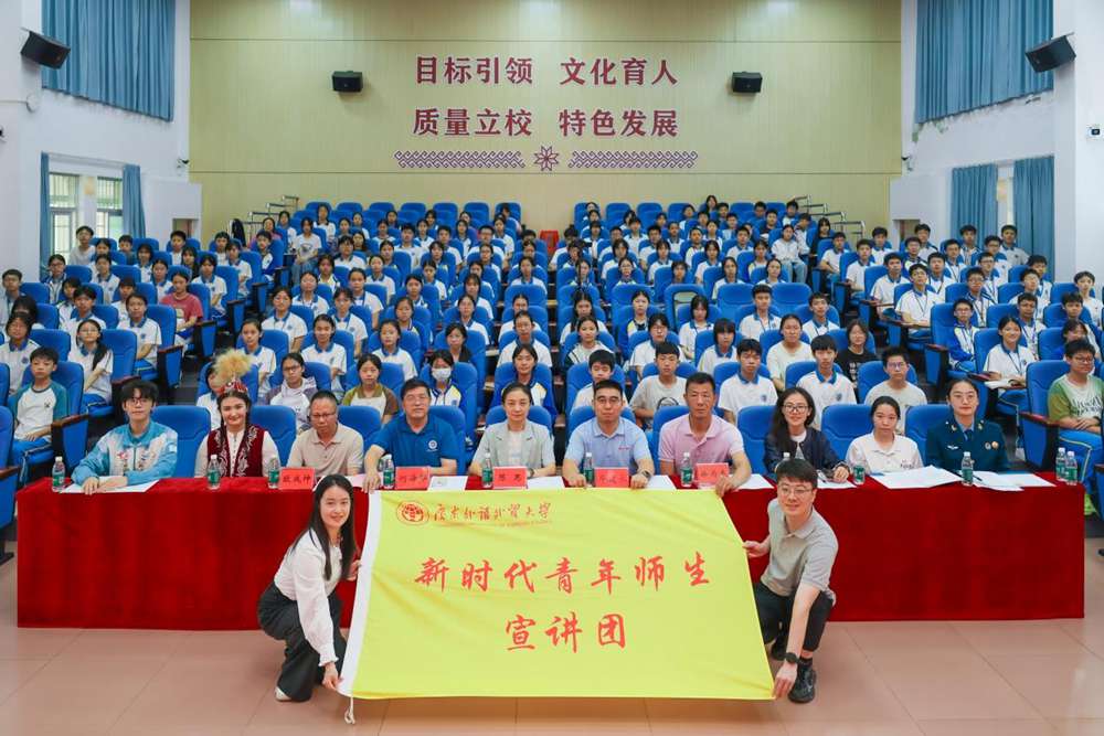 宣讲的舞台不止有语言的分享,更有文化的鲜活传递。本科生叶勒达那・曼散阿林身着新疆民族服饰,以一段欢快灵动的新疆民族舞瞬间点燃全场,更现场邀请同学们共学简单舞蹈动作,让在场的青少年直观感受到新疆文化的独特魅力。她说:“走出家乡,不是为了离开,而是为了多看世界、多学本领;而走得再远,心里也会装着家乡的风、家乡的人、家乡的味道。”这句真挚的话语,让在场不少学子红了眼眶。