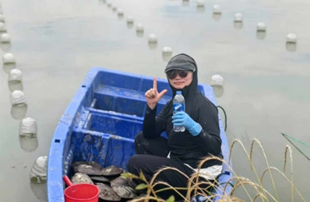 围绕淡水珍珠蚌的遗传育种与生态养殖,汤刘思巧跟随团队开展了一系列科研攻关。她参与的项目项目《基因赋能,净水育珠——三角帆蚌高效育种与生态养殖协同创新技术》,聚焦智慧赋能贝类生态养殖与水域环境治理,探索科技志愿服务新模式,凭借扎实的社会实践成果,荣获上海市“知行杯”暑期社会实践大赛特等奖。此后,团队再接再厉,项目《智育明珠,净泽水乡——从实验室到塘埂的九年青春故事》,在中国研究生乡村振兴科技强农+创新大赛中再获全国二等奖。