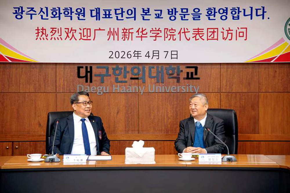 在教育合作与人才培养环节,双方经深入磋商,达成了多项务实合作协议,旨在通过资源共享构建多元化育人体系。一是开启国际交换生计划和师生互访计划。大邱韩医大学将启动接收广州新华学院交换生进行为期一学期的深度研修项目;韩方亦计划派遣师生代表团赴广州新华学院开展学术文化交流,进一步促进校园多元文化的交融。二是高层次培养创新化,达成大邱韩医大学、广州新华学院与澳门圣诺瑟大学(University of Saint Joseph)三方开展研究生联合培养项目的意向。这一极具创新性的跨区域、跨文化培养模式,将整合三校优势学科资源,为国际化高端人才的培养开辟新路径。
