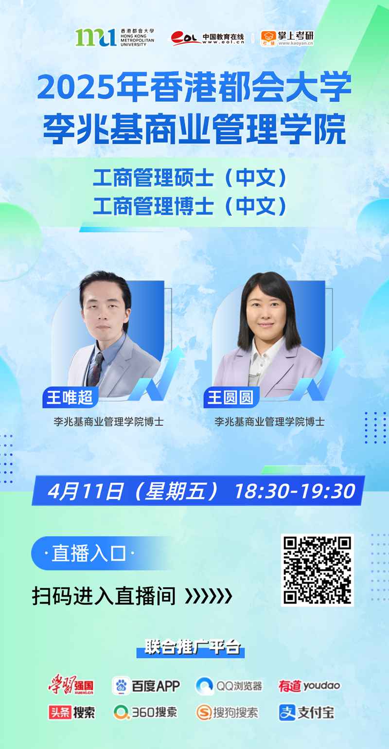 直播预告|4月11日 香港都会大学李兆基商业管理学院工商管理硕士(中文)、工商管理博士(中文)课程介绍!