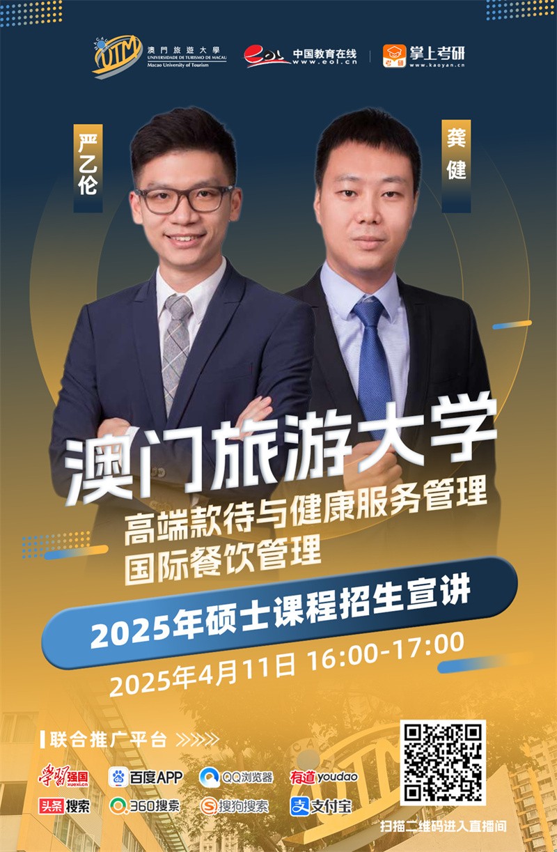 敬请留意|4月11日下午澳门旅游大学硕士课程招生宣讲开讲!