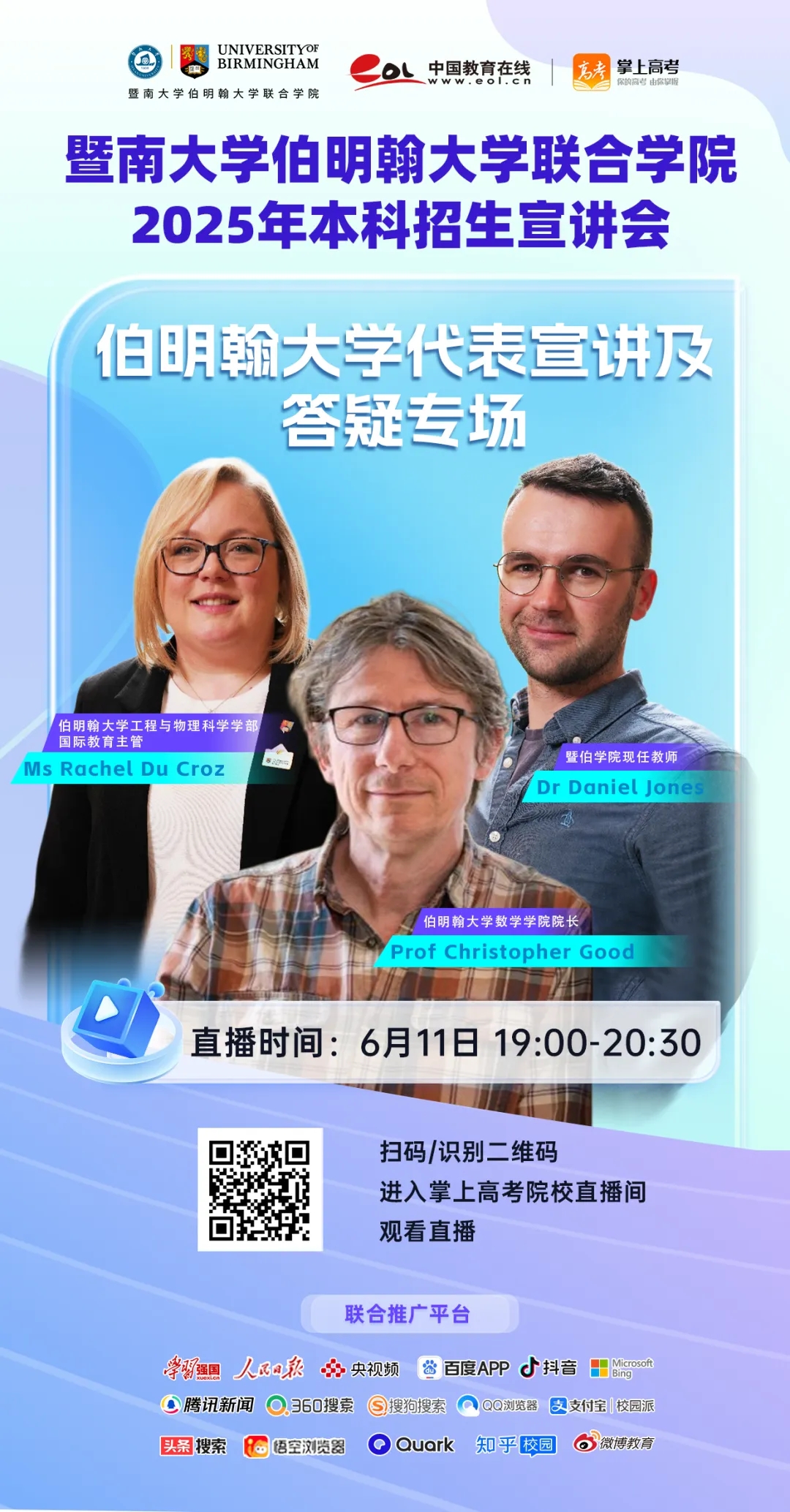 暨南大学伯明翰大学联合学院2025招生季线上招生活动预告
