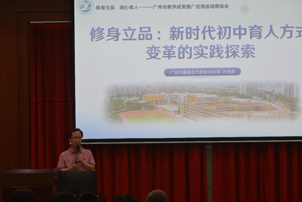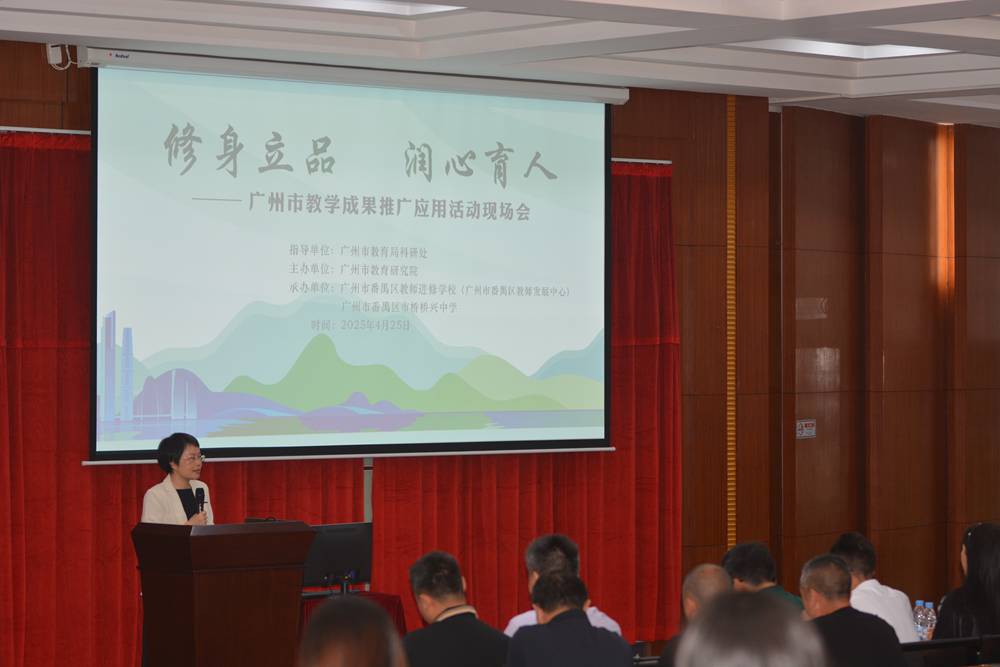2025年4月25日,由广州市教育研究院主办,广州市番禺区教师进修学校(广州市番禺区教师发展中心)与广州市番禺区市桥桥兴中学联合承办的广州市基础教育教学成果推广现场会在桥兴中学隆重举行。本次会议以"修身立品,润心育人"为主题,重点展示桥兴中学在育人方式变革中的创新实践成果,该成果曾荣获2024年广州市基础教育教学成果优秀奖。