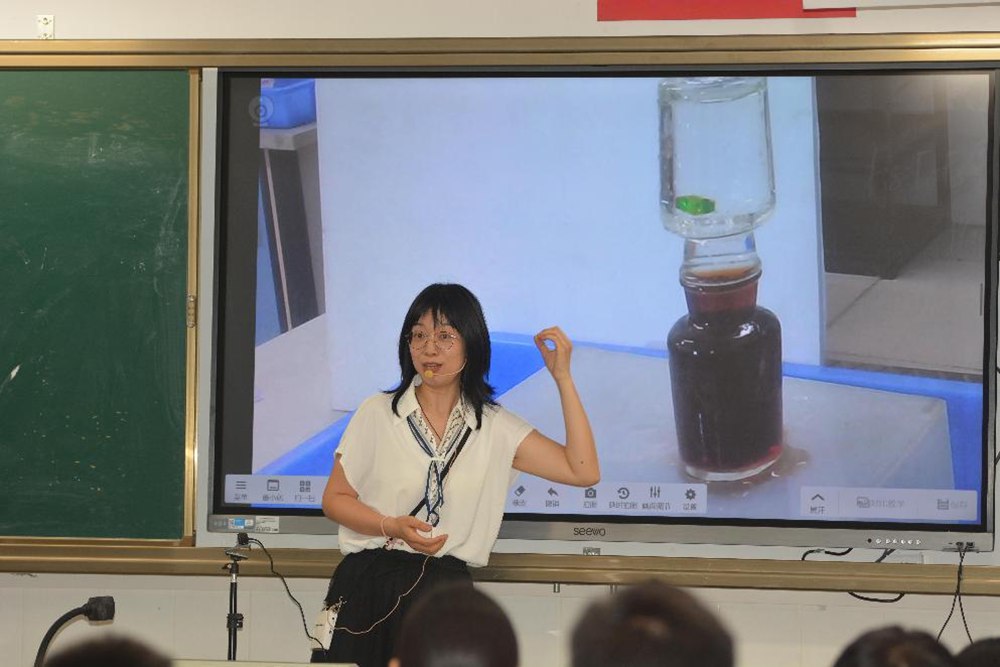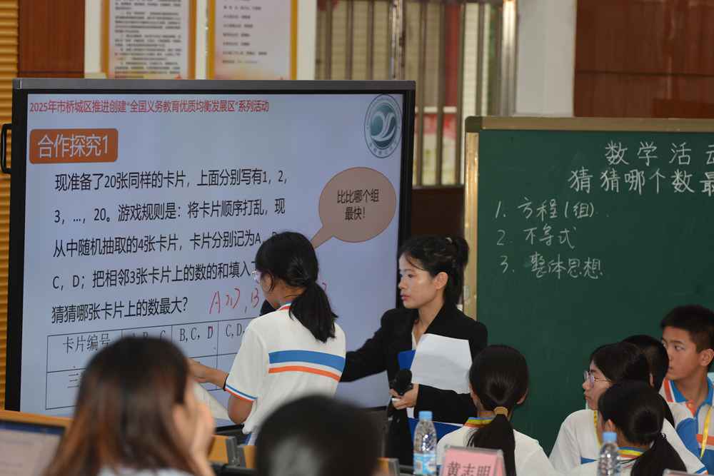 在课堂观摩环节,桥兴中学五个学科的教师代表展示了融合"新三式"育人理念的教学实践。数学教师宋美琴和地理教师黎雅雯分别通过《第十一章数学活动:猜猜哪个数最大》和《区域地理与农业》课例,展现了"任务探究式"教学在激发学生主动性方面的显著成效;物理教师张燕玲和美术教师陈晓晓则通过《密度的测量》和《千年梦敦煌》课例,诠释了"实践体验式"教学在培养学生创新思维方面的独特价值;心理健康教师何钰珊的《合理归因促成长》课例则系统呈现了"自主内省式"教学在促进学生自我认知发展方面的积极作用。