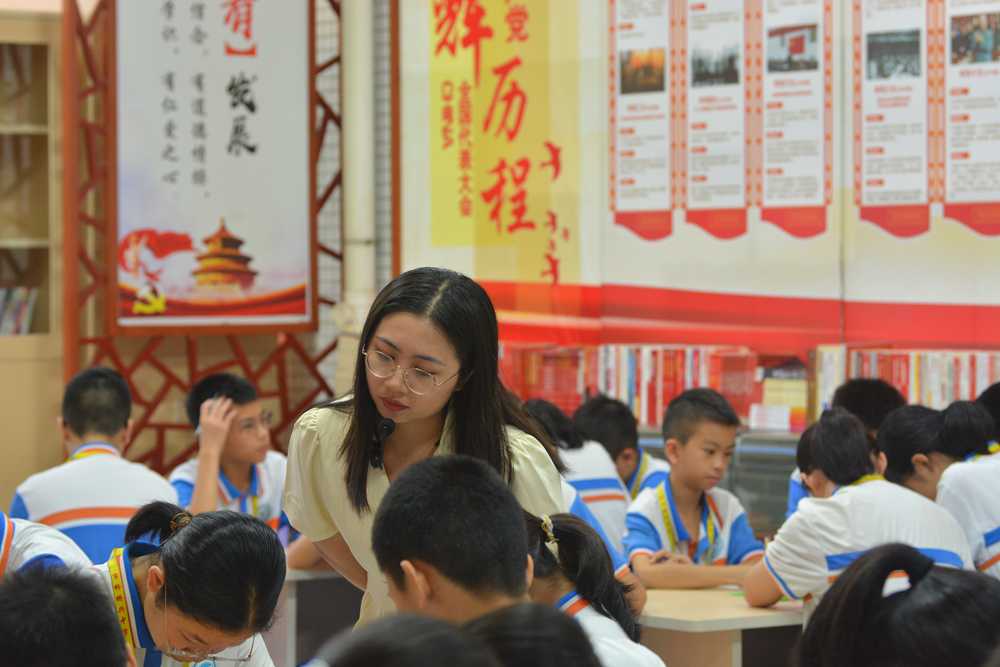 会议期间,与会人员参观了学校特色课程展示区。在实践体验区,"动手编织一个新世界""中医药文化""广绣技艺"等主题作品充分展现了学生将理论知识转化为实践能力的综合素质。此外,英语演讲比赛、道德与法治辩论赛等活动的开展,以及大课间活动、书画社团成果展等内容的呈现,全面展示了学校"新三式"协同育人模式下师生的精神风貌。