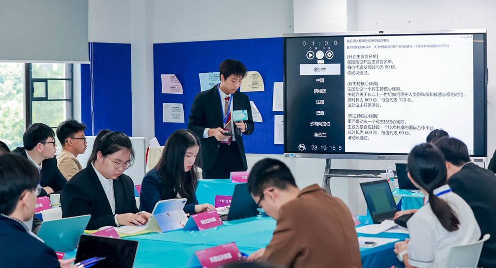 本届大会学术设计深度与广度兼具:小学会场“全球儿童食品安全与营养均衡”、“建设老龄化友好城市”、“濒危物种保护与人类责任”三大核心议题,设立中英文共26个平行委员会;中学会场则聚焦更高维度的全球性挑战,设置中英文共21个委员会,围绕四大议题:“建设可持续城市”、“极端天气应对”、“共建公平的人工智能发展规则”和“数字时代的被遗忘权”。 这些议题不仅贴近全球热点问题,也与青少年的成长息息相关,引导他们关注全球发展,思考人类命运共同体的构建,为青少年提供了展示公共外交素养的舞台。