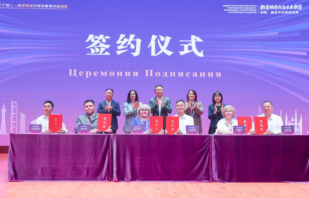 喀山第51中学与广州市实验外语学校、喀山第132中学与广州大学附属中学、喀山第9中学与广州外国语学校签署缔结姊妹学校。广东外语外贸大学实验中学与莫斯科二十一世纪综合学校、喀山市第187中学签署教育深化合作协议,这些签约将推动资源共享与经验互鉴。