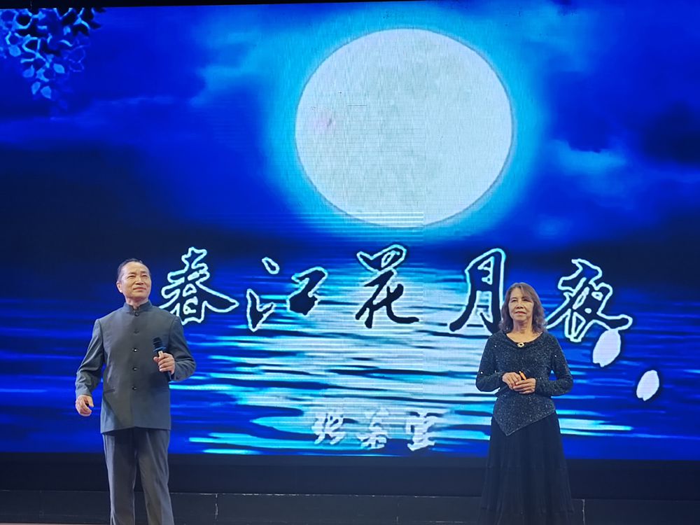随后,中国诗词学会朗诵演唱专业委员会委员、中华诗词学会朗诵艺术专业委员会专职委员、澳门语言艺术协会杨瑞英会长,与澳门爱国主义教育总会理事、中国诗词学会朗诵演唱专业委员会会员、澳门语言艺术协会穆进春副会长联袂献上诗朗诵《春江花月夜》。悠扬的声韵中,与会者深刻体会到:阅读是跨越时空的对话,而诗歌正是文字中最灵动的音符。