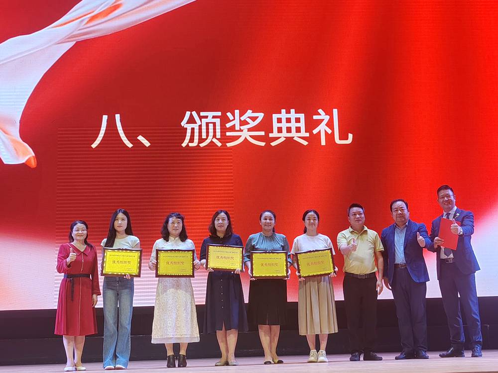 主办单位孙朝阳会长(右二)和承办单位苏家金董事长(右三)、红姐姐(左一)为优秀组织单位颁奖