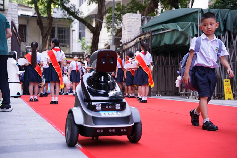 9月1日上午,金色的阳光洒满校园,广州市越秀区建设大马路小学(以下简称建大)隆重举办以“智慧启航 强体筑梦”为主题的开学盛典,正式开启了新学期征程。这场融合爱国主义教育、体育精神与科技创新的典礼,以“庄严”“创意”“活力”三大篇章,奏响了新学期昂扬的序曲。