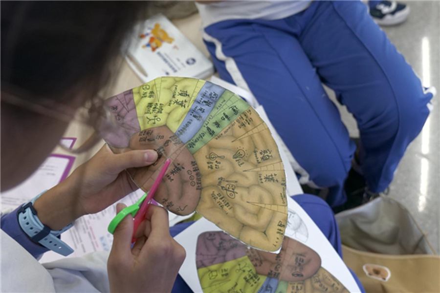 学生们还亲手制作了大脑模型,通过彩纸和剪刀,他们将科学知识转化为实际操作,体验了科学魔法的魅力。在动手制作的过程中,学生们不仅锻炼了动手能力,还加深了对大脑结构的理解。