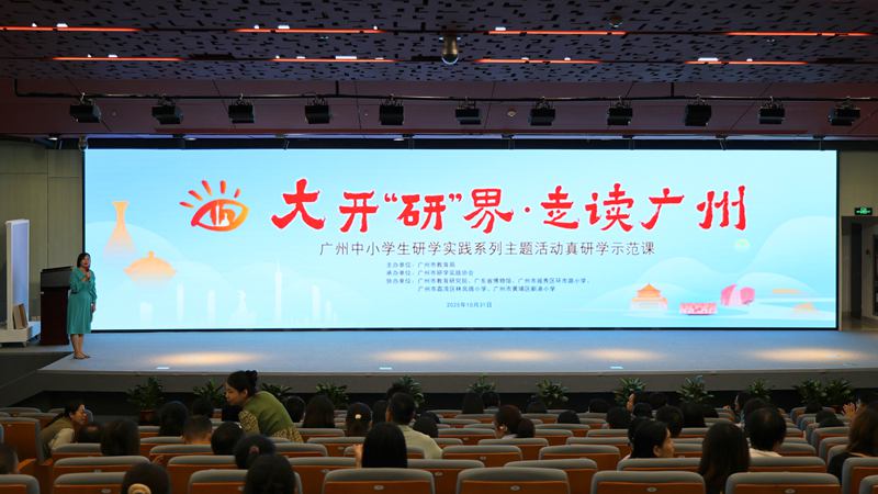 2025年10月31日,由广州市教育局主办,广州市研学实践协会承办,广州市教育研究院、广东省博物馆、广州市越秀区环市路小学、广州市荔湾区林凤娥小学、广州市黄埔区新港小学等单位协办的2025年“大开‘研’界·走读广州”中小学生研学实践系列主题活动的首场公开课在广东省博物馆圆满举行。