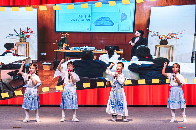 《紫石印迹》以端砚文化为核心,学生在触摸端石、欣赏国宝级端砚、学习拓印技艺的过程中,深入理解非遗文化的艺术价值与合作探究的乐趣。