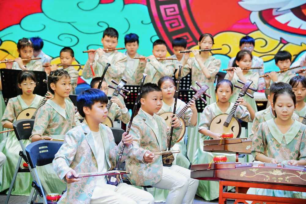欢迎仪式在乐行楼一楼大礼堂举行,由张博彦老师主持。仪式伊始,学校宣传片缓缓播放,全面展现了广州开发区第二小学在教育教学、特色课程、校园文化等方面的发展成果。随后,传统文化与青春活力交织的节目轮番上演:民乐合奏《珠江潮》以悠扬旋律再现岭南文化精髓,在鼓点与丝竹声中尽显中华优秀传统文化的魅力;啦啦操《活力“啦”满》则由学生们以灵动舞姿展现少年朝气,现场掌声不断。