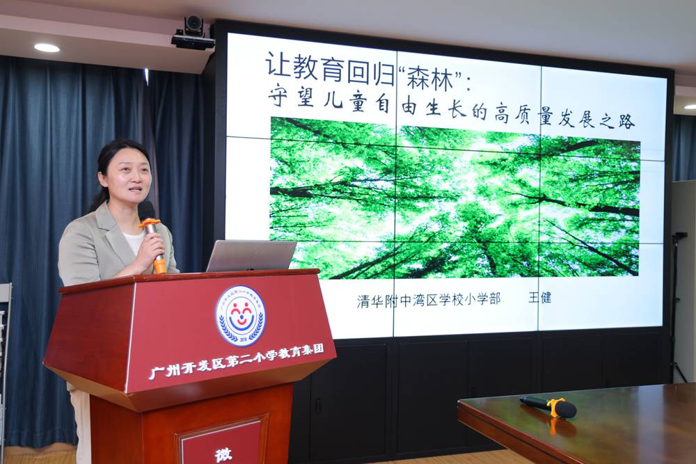 广州市清华附中湾区学校小学部校长王健的《让教育回归“森林”:守望儿童自由生长的高质量发展之路》,倡导尊重儿童成长规律的 “生态化教育”;