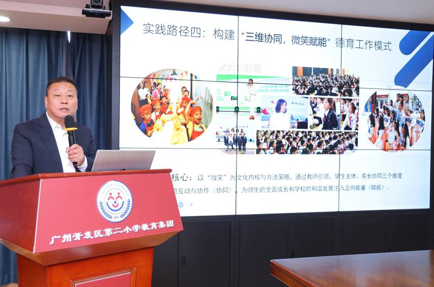 广州开发区第二小学副校长李琳玉则提出《PERMA赋能:构建“1+1+1〉3”的微笑教育新生态》,从积极心理学角度解读家校社协同育人的路径。