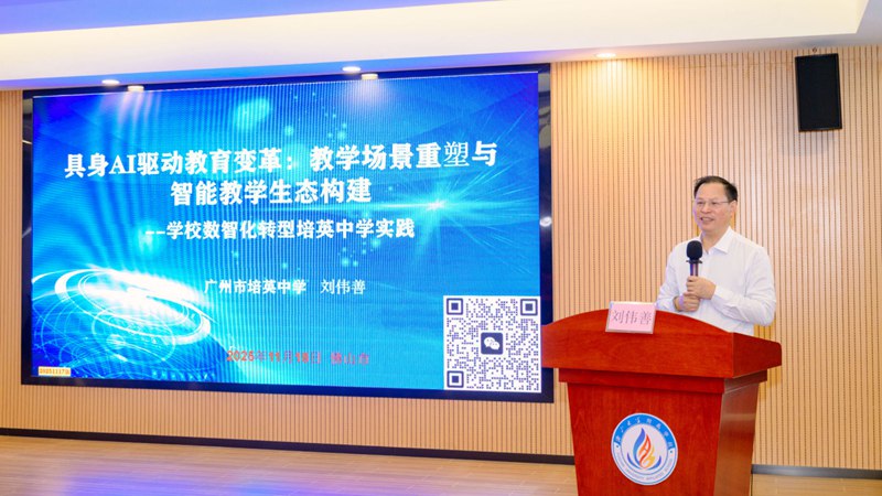作为活动的核心引领力量,广东省刘伟善名教师工作室以前瞻性的教育视野、系统化的实践成果与深度的育人格局,成为关注焦点。在主持人、广州市培英中学副校长刘伟善的带领下,工作室不仅全程参与大会核心议程,更以四场高质量专题分享,立体呈现了“教师个体—工作室团队——学校整体”三层联动的AI融合育人样本,为广东教育数字化转型注入强劲动能。