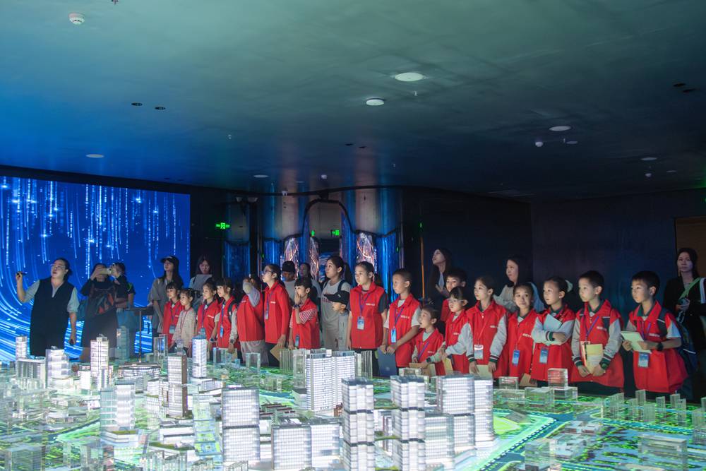 小记者刘偌滢盯着沙盘上的临湖景观,悄悄在笔记本上写下:“这里又美又厉害!”