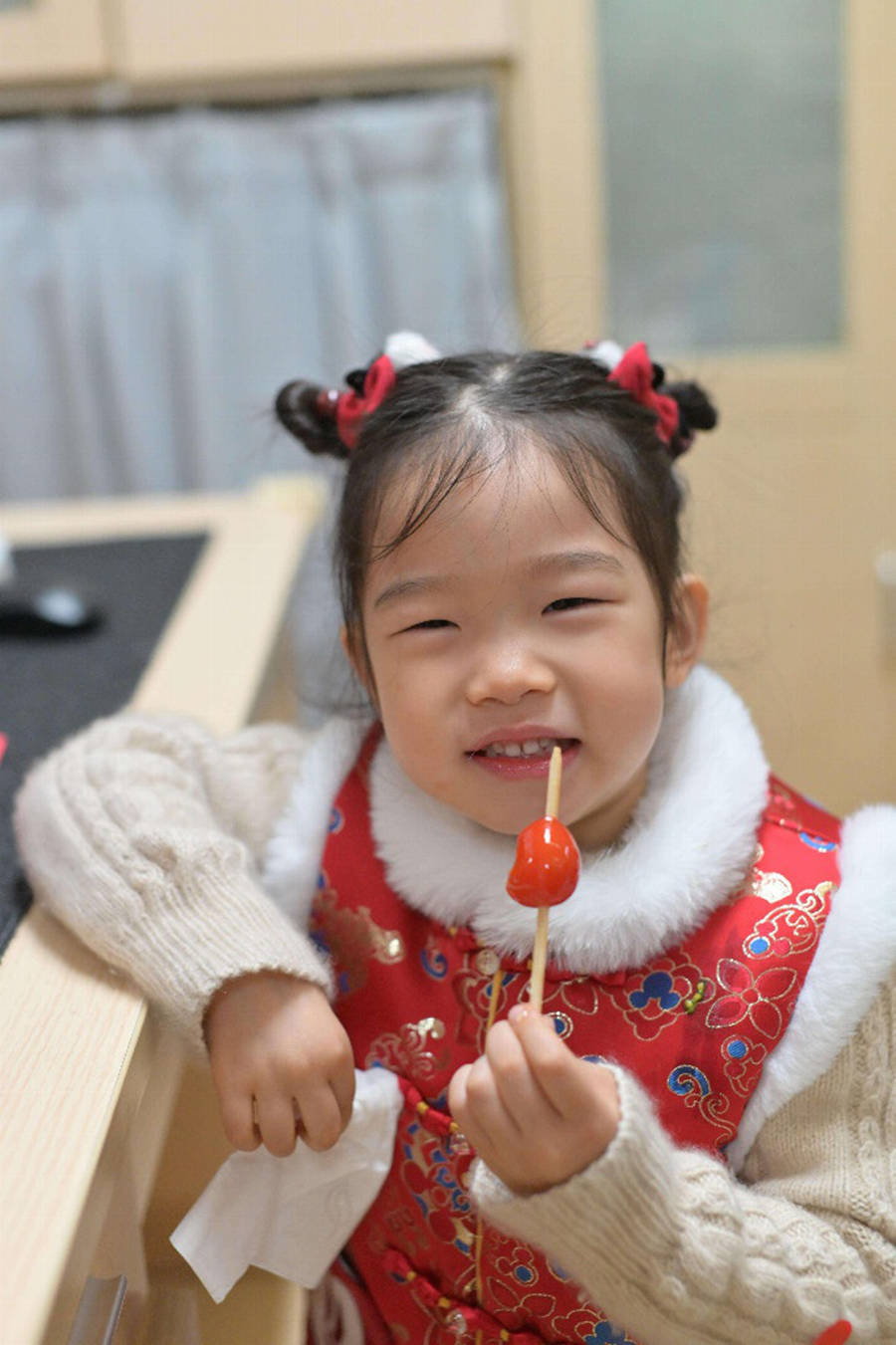 味觉的盛宴同样不可或缺,“年味食光甜满盈”系列活动让孩子们大饱口福。小一班教室里烧制软糯香甜的小汤圆,孩子们亲手揉搓面团,体验制作美食的乐趣;冰糖葫芦制作摊位前香气四溢,酸甜可口的糖葫芦串让孩子们回味无穷;棉花糖摊位前排起了长队,丝丝缕缕的糖丝缠绕成蓬松的棉花糖,甜到了孩子们的心坎里;小二班教室里包制水饺,鲜香的馅料、饱满的外形,让孩子们品尝到舌尖上的年味,也感受到团圆的美好。