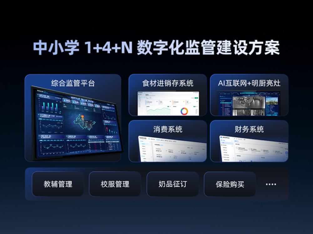 利楚教科智慧校园解决方案发布会上介绍,1+4+N数字化监管解决方案包括一个局端监管平台和四大业务闭环。1个局端监管平台作为区域校园治理的数字中枢,打通多端数据,通过多级驾驶舱支撑省、市、县、校四级管理决策。食材监管、餐费监管、财务核算、监管处置4大闭环,环环相扣,实现从采购源头到资金去向、从财务规范到问题处置的全流程闭环管理。