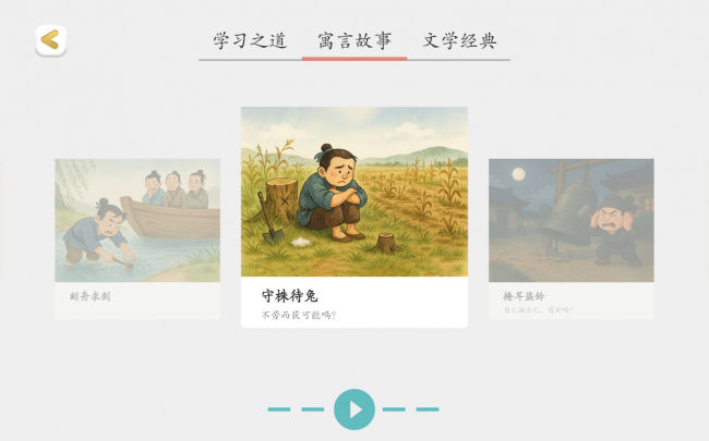 • 阅读载体:以七言古诗、完整成语故事、小学低年级绘本为核心,覆盖人教版课标必背古诗如《静夜思》、小学常用成语,如《守株待兔》等。