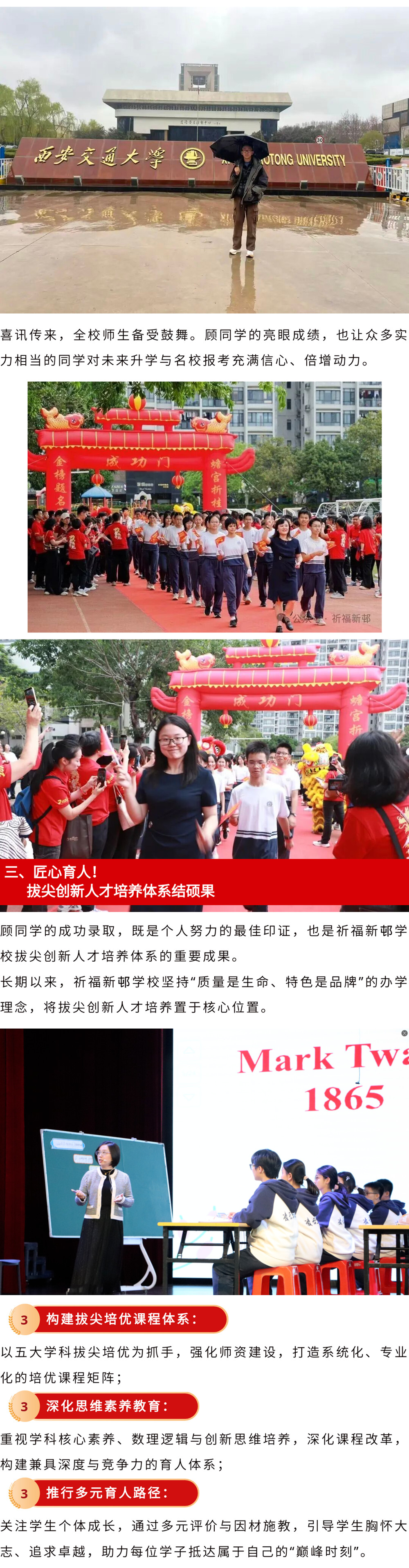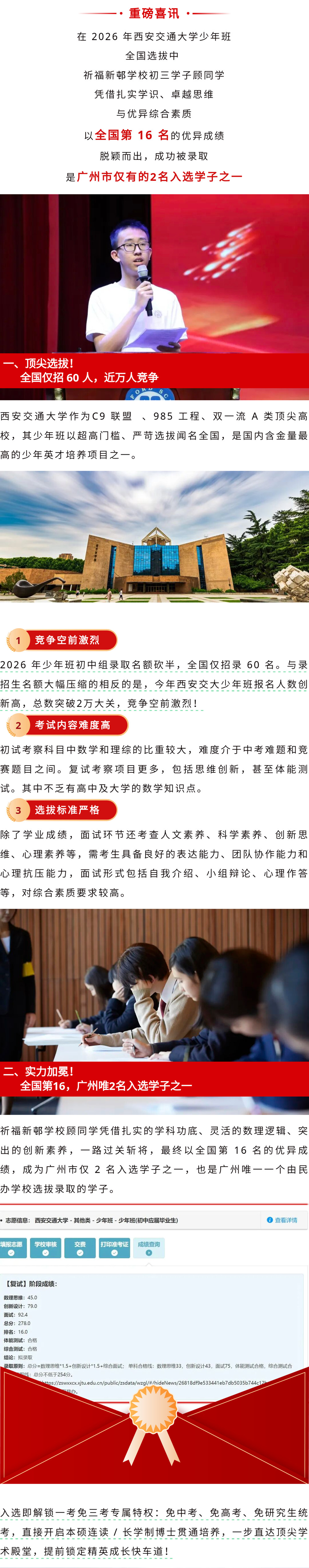 【喜报】祈福新邨学校初三学子被西安交大少年班录取!全国第 16 名!