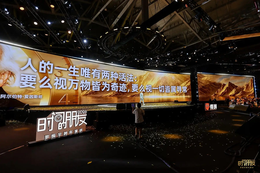 2025年12月31日20:30,罗振宇2026“时间的朋友”跨年演讲在海南三亚保利国际博览中心举行。这是罗振宇发愿连续举办20年跨年演讲的第11个年头,现场4400名观众与线上超过4500万观众、全球324个分会场共同参与,沉浸于这场以“1000天后的世界”为主题的年度思想盛宴,探寻在人工智能浪潮席卷之下个体和组织的生存与发展之道。