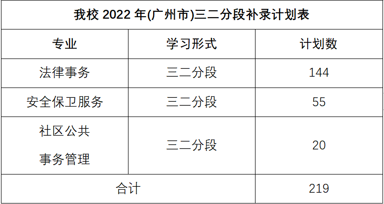 广州市中考学生:我校第一批次三二分段新生录取、注册报到工作业已结束。根据各专业计划缺额情况,我校现公布三二分段专业补录计划。