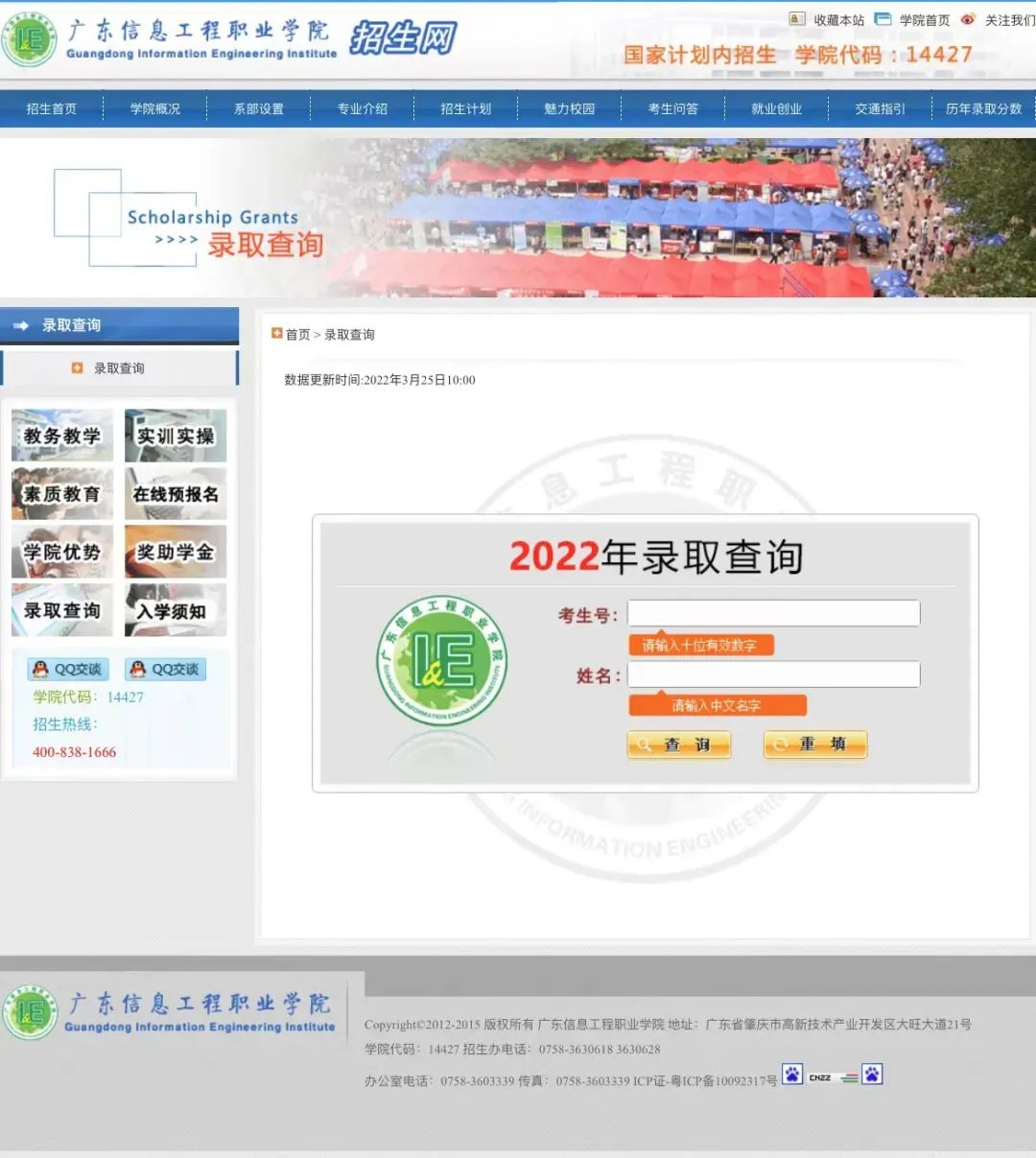 2、学院官网查询--请登录广东信息工程职业学院招生信息网http://zs.xxgcxy.cn/enrollsearch.html