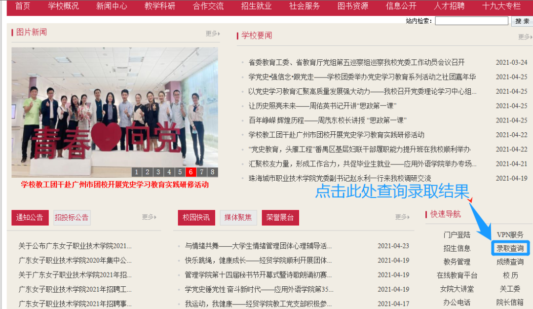 通过我校官网首页的“录取查询”功能查询你的录取情况。