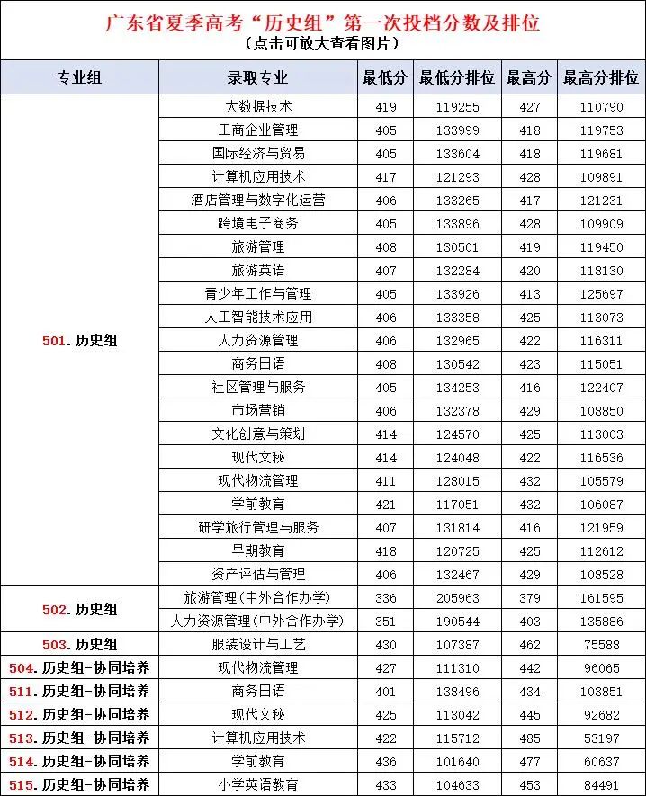 广东女子职业技术学院2022年广东夏季高考各专业最低分及排位公布!