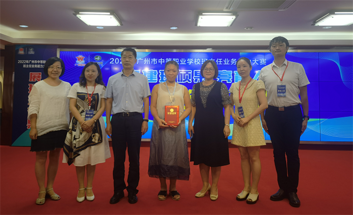广东省中职德育中心领导、校班主任工作室老师和庄鹏姬老师在班主任能力大赛市赛决赛现场合影