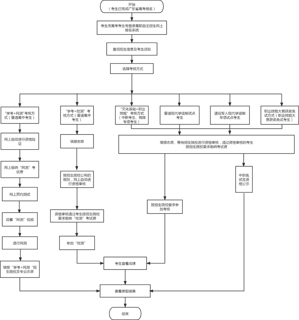 (一)5月7日10:00至10日16:00,考生凭高考报名号及密码登录“广东省2025年高职院校自主招生网上报名系统”(点击此处进入系统)报名,签订《诚信考试承诺书》,在“文化基础+职业技能”(面向中职考生)、“退役军人现代学徒制专项试点”(不分考生类型)两种考核方式中选择一种填报志愿、缴交考试费(缴费方式另通),录入相关报名信息、上传有关证明材料(原件扫描版,下同)。