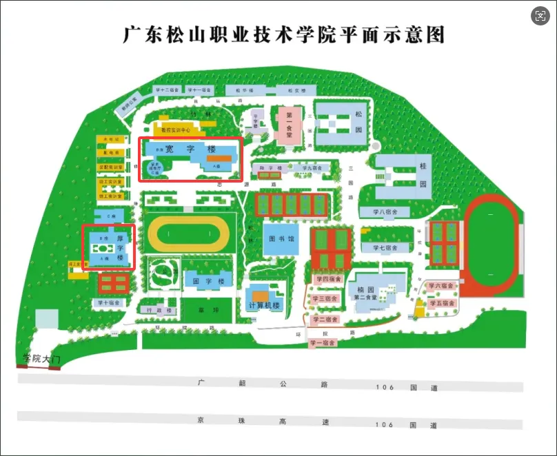 考试地点:广东松山职业技术学院曲江校区(厚字楼、宽字楼)