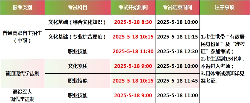 报考普通高职自主招生(中职)的考生(非学徒制)考完“文化基础(综合文化知识)”后,继续在原座位完成“文化基础(专业综合理论)、职业技能”考试(“职业技能”免考除外);
