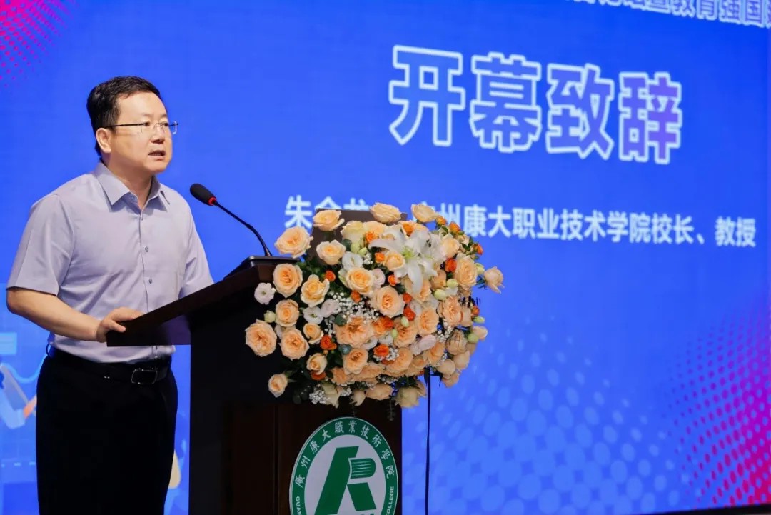 开幕式由广州康大职业技术学院党委书记卓光琳主持,广州康大职业技术学院校长朱金龙介绍了学校在产教融合中的实践成果,如与小鹏汽车共建智能制造现场工程师学院、与医疗机构共建临床学院等。他强调,职业教育需立足国家战略,构建服务现代产业体系的“顶天立地”发展模式。北京大学EDD论坛执委会主任单强教授提出“破界、聚势、共生”三大关键词,呼吁职业教育打破传统边界,融入区域产业链。广东省产教融合促进会会长凌靖波建议通过“破界融合”“机制重构”和“多元评价”深化协同育人,打造“湾区产教融合共同体”。