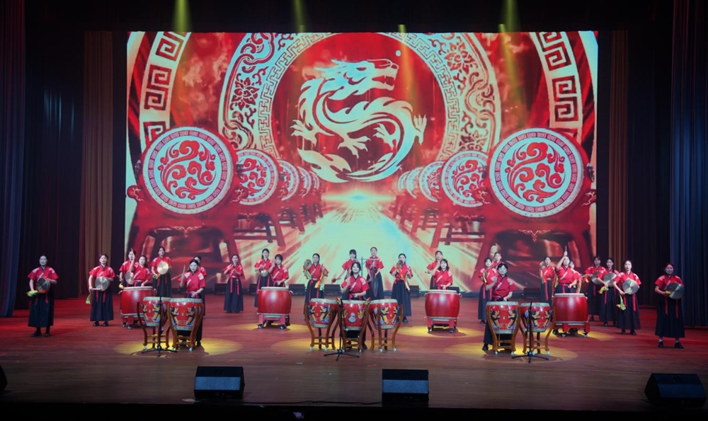 图为精彩汇报演出节目中国鼓《龙腾虎跃》
