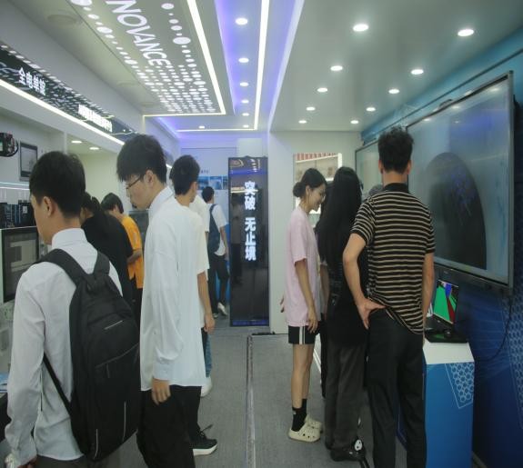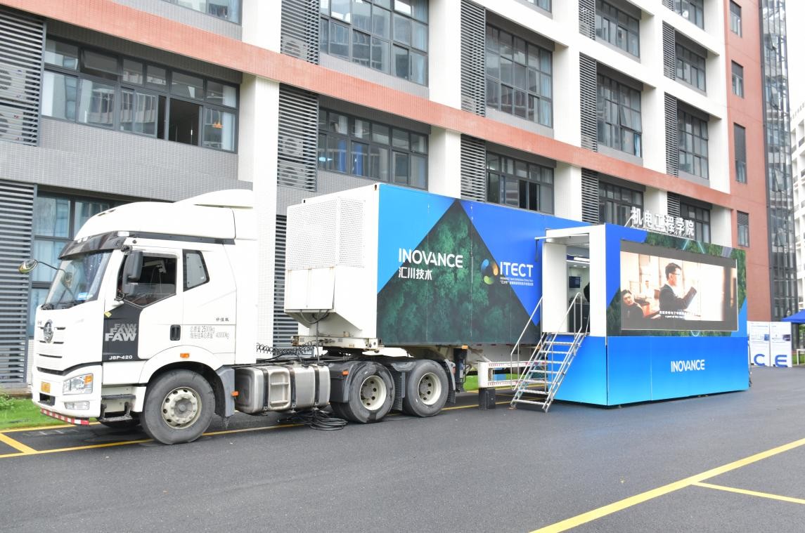 本次巡展,汇川技术让“智能制造领先技术全国巡展”展车“汇川号”走进校园,其十六米长、五米宽的扩展车厢就是一个“移动展馆”,内部搭载了八个解决方案动态演示装置,设置了参观动线和VR云讲解。与会人员在“汇川号”里沉浸式体验了生产场景,认真听取了关于“汇川号”千巡车技术原理,同时参观了广东工贸职业技术学院智能制造实训基地,听取了广东工贸职业技术学院实训基地建设理念及人才培养模式的详细介绍,并围绕广东工贸职业技术学院在智能制造领域的前瞻性布局与“产学研用”一体化实践技术创新、产教融合等议题展开深入交流。
