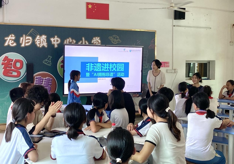 为响应文化和旅游部办公厅关于开展2025年“文化和自然遗产日”非遗宣传展示活动部署,广东轻工职业技术大学与韶关学院创新联动,近日,两校师生共赴韶关市武江区龙归镇中心小学,开展“非遗进校园暨‘AI拥抱非遗’”主题活动。活动以“大手拉小手”形式,通过科技赋能非遗传承,生动演绎了“融入现代生活——非遗正青春”的年度主题,为非遗保护注入青春动能。