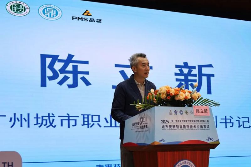 广州城市职业学院党委副书记陈立新在致辞中表示:本次技能大赛见证了国内院校智能建造领域的青年才俊大放异彩,展现了卓越的技能与潜力。期待未来,他们为城市更新建设贡献力量。同时,他向为大赛顺利举办辛勤付出的工作人员表示衷心的感谢!