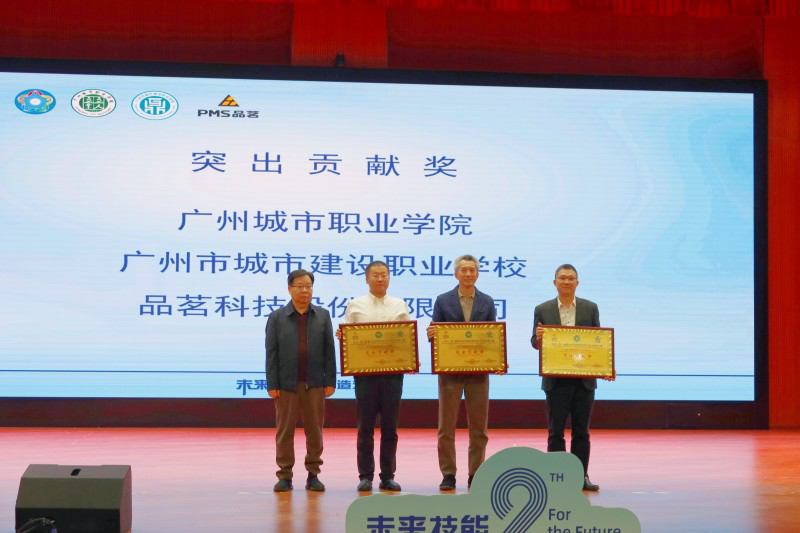 为表彰广州市城市建设职业学校、广州城市职业学院与品茗科技股份有限公司在承办本次大赛中的卓越贡献,广州市职业教育与终身教育学会杨志勇会长为三家校企联合承办单位颁发了“突出贡献奖”,此举也充分彰显了广州在整合政、校、企资源,共同推动职业教育高质量发展的先进模式与区域优势。