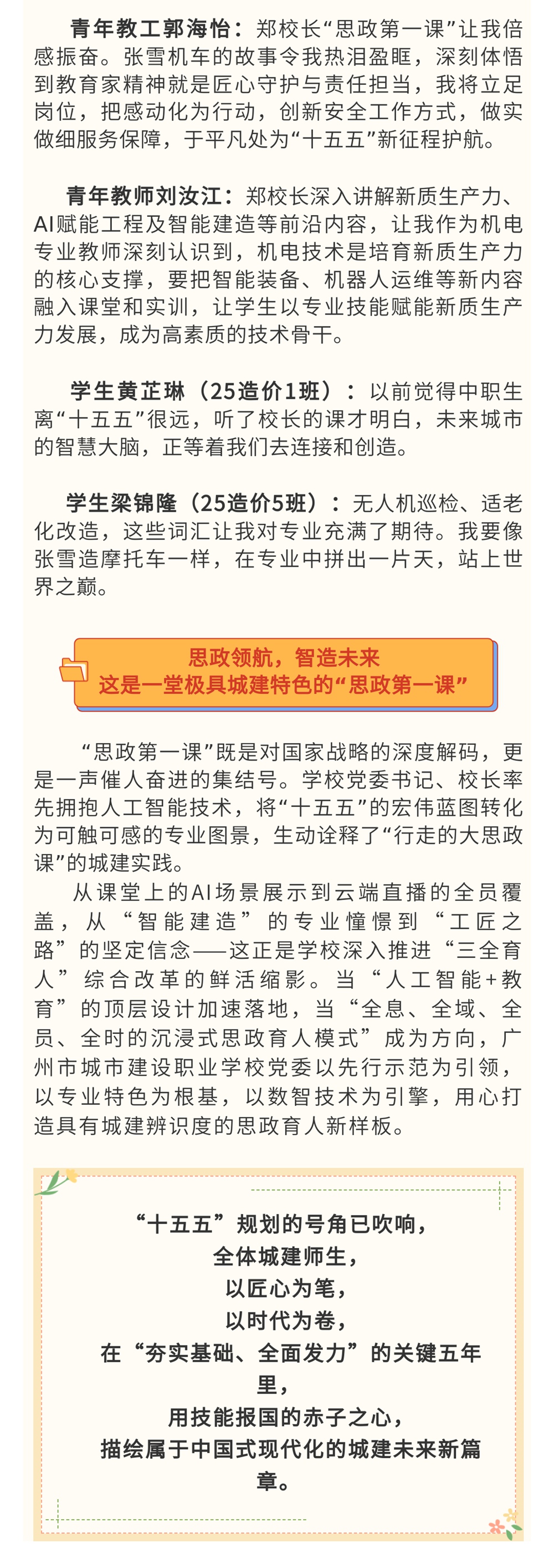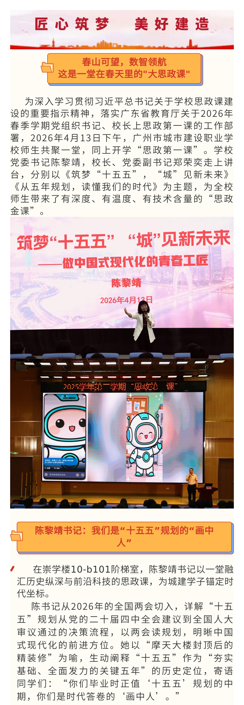 筑梦“十五五” “城”见新未来 | 广州市城市建设职业学校2025—2026学年第二学期“思政第一课”开讲