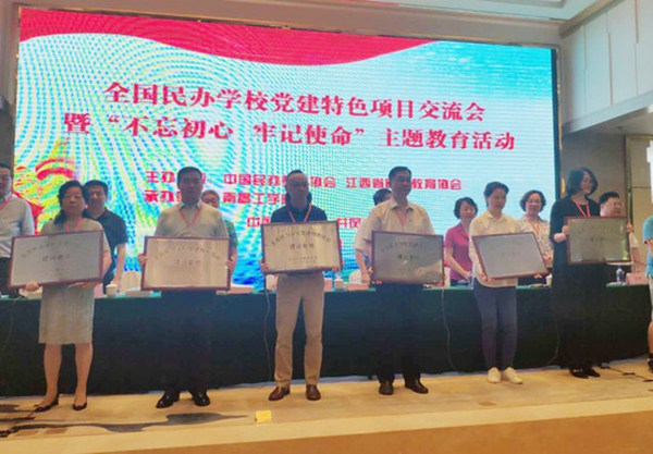 中国教育在线讯 6月26日,由中国民办教育协会主办、南昌工学院承办的全国民办学校党建特色项目交流会暨“不忘初心 牢记使命”主题教育活动在江西井冈山召开,广州大学华软软件学院《“一月一主题”,促党支部组织生活新常态》项目评为全国民办学校首批党建特色建设项目,获授“全国民办学校党建特色项目建设基地”牌匾,成为广东省两所受表彰民办高校之一。