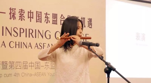 郑笛文同学在闭幕仪式上表演中国民乐——竹笛