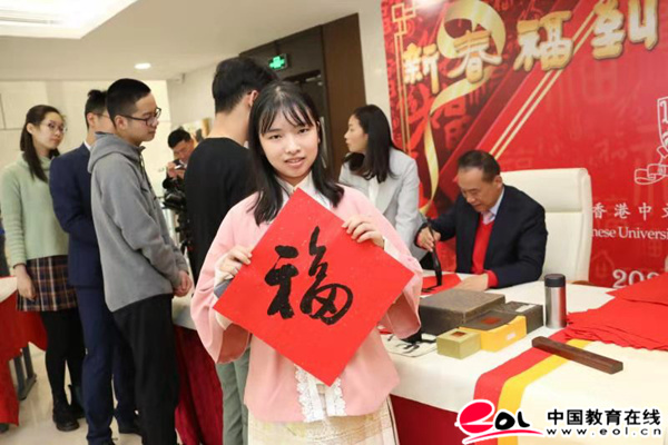中国教育在线讯 草书、楷书、隶书……徐扬生校长灵活运用不同的字体写着”福”字,向学生传达不同的祝福。1月16日,香港中文大学(深圳)校长徐扬生携手大学学生社团南露书法社,举行了“新春福到,曙光一片”书法送福活动。作为港中大(深圳)的传统,每逢农历春节前,徐扬生校长都会与同学们一起创作书法,写对联或者写“福”字,以此寄盼新年进步,亦让学生感受到中国传统节日的美好。除了内地学生以外,还有国际生共同参与活动,文化碰撞,春意满溢。