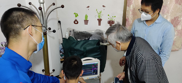 设备在实验室研制成功后,通过了专业医疗研究所的测试(图3)以及相关医院的临床测试(图4),结果表明此研制设备满足医院临床要求。中山大学孙逸仙纪念医院主任医师刘中霖测试后表示:“该科研产品适合我们现在的需求,对疫情时期疾病的诊治非常有帮助”,孙逸仙纪念医院急危重症实验室的杨正飞医生测试后表示:“对就医者一人换一次听诊器很不方便,而且成本太大,这款听诊器对避免接触性传染有帮助”;广州市妇女儿童医疗中心副主任医师柴成伟测试后表示:“这款听诊器不仅是现在抗疫的需要,而且也是现代听诊器的一个发展方向,尤其是对医学电子资料的保持、远程会诊、偏远地区医疗条件的改善都是有重大意义的”。广东省第二中医院副主任医师高伟测试后表示:“这款听诊器携带方便,操作简单,听诊清晰,对于临床医生来说更容易获取分辨患者听诊内容,对于低年资医师更容易鉴别诊断”。