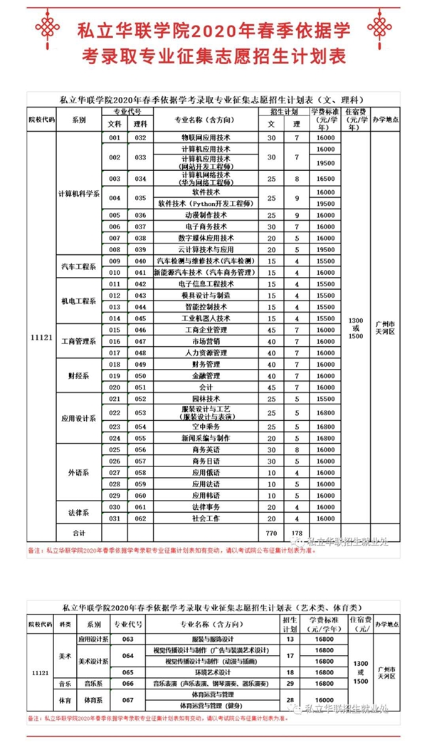 私立华联2020年春季依据学考录取征集志愿计划数来啦