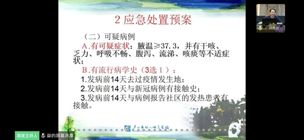 第二项培训内容由党委副书记梁东标主讲。梁书记结合《广州市教育系统防控新型冠状病毒肺炎疫情工作领导小组关于转发学生返校注意事项12条等文件的通知》,讲解了“学生返校注意事项12条”,强调教职工及学生要每天做好“穗康APP”健康情况申报;同时,结合《广州市学校防控新冠肺炎疫情应急处置预案(试行)》进行了讲解,让全体教职工知晓返校后快速反应、及时控制和妥善处置校园普通发热病例、可疑病例和突发新冠肺炎疫情等情形的应急处置措施、应急响应流程,维持学校的正常教育教学秩序。