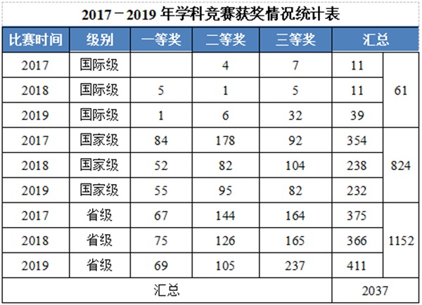 2017-2019年学科竞赛获奖情况