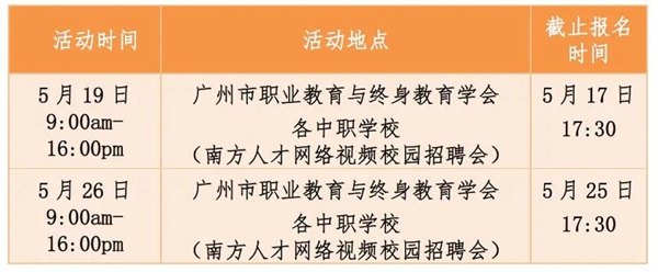 为进一步落实国家、省、市对新型冠状病毒感染的肺炎疫情防控工作部署,打赢疫情防控狙击战,同时为各位毕业生朋友提供不间断的就业服务,广州市职业教育与终身教育学会联合南方人才市场,充分利用南方人才市场专业优势和资源,共同举办广州市中职学校2020届毕业生网络视频招聘会;特邀请您参加。现将活动详情函告如下: